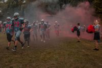 Nach der Trikot-Präsentation erhielt unsere Mannschaft endlich die Möglichkeit eines ersten effektvollen Auflaufens als Team zu ihrem ersten Spiel, bejubelt von unserer noch kleinen Cheerleader-Gruppe. Viele Zuschauer waren gekommen, um die erste American Football-Mannschaft unseres Vereins live zu erleben. Auch wenn es nur um ein Testspiel mit ein paar Regel-Anpassungen für unsere Zuschauer ging, war die Aufregung und Motivation dennoch sehr hoch. Hier konnte dann gezeigt werden, was als Team im letzten halben Jahr beim Training gelernt wurde.